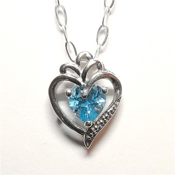 SILVER CREATED GEMSTONE 16" NECKLACE