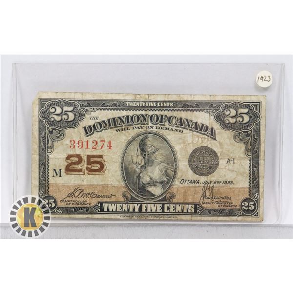 1923 DOMINION OF CANADA 25 CENTS SHINPLASTER NOTE