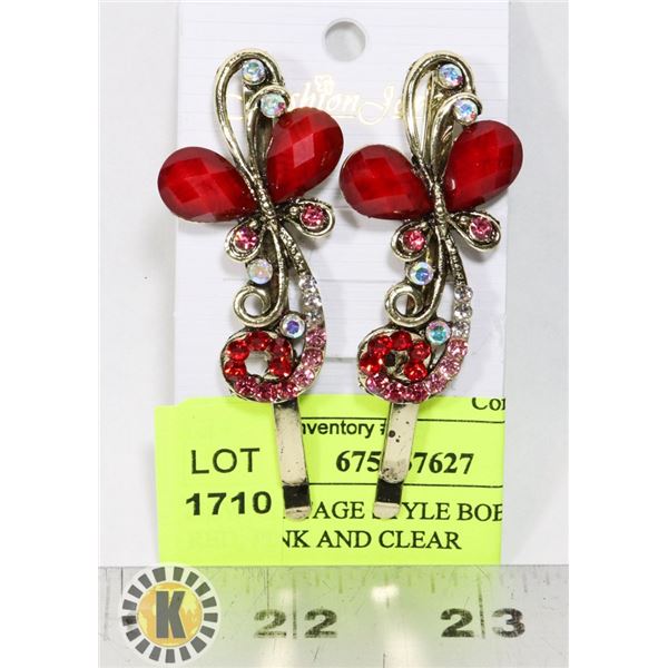 NEW VINTAGE STYLE BOBBY PINS RED, PINK AND CLEAR