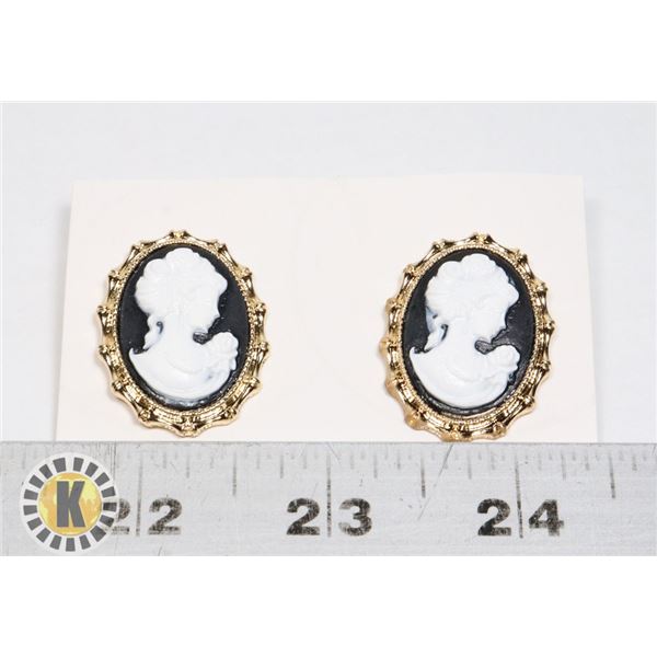 NEW VINTAGE LOOK CAMEO STUD EARRINGS