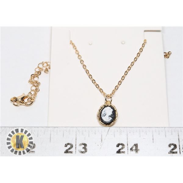 NEW BLACK AND WHITE CAMEO PENDANT NECKLACE
