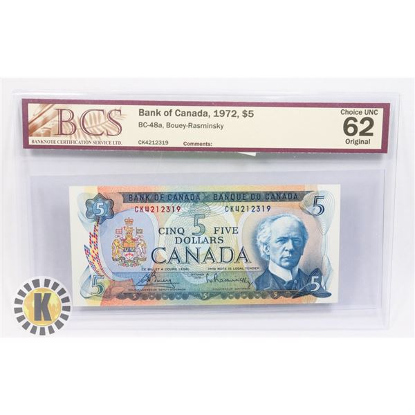 1972 CANADIAN $5 BOUEY-RASMINSKY BANK NOTE