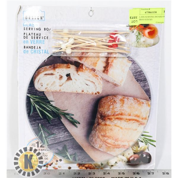 NEW GLASS SERVING BOARD WITH 12 BAMBOO STICKS