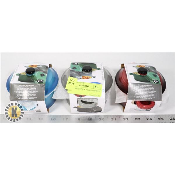SET OF THREE NEW TINY POTS WITH LIDS