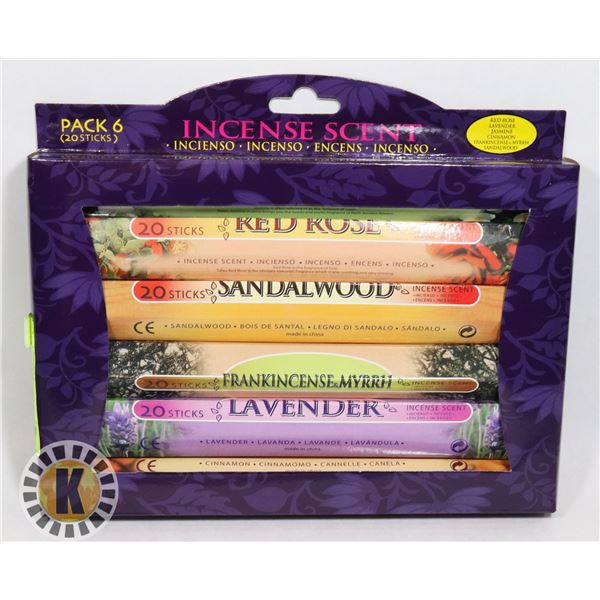 NEW 6PK ASSORTED INCENSE, 20 STICKS