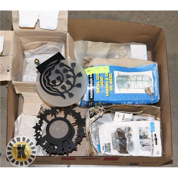 BOX OF CAGE LIGHT AND PARTYLITE DECORATION