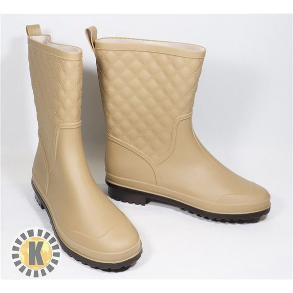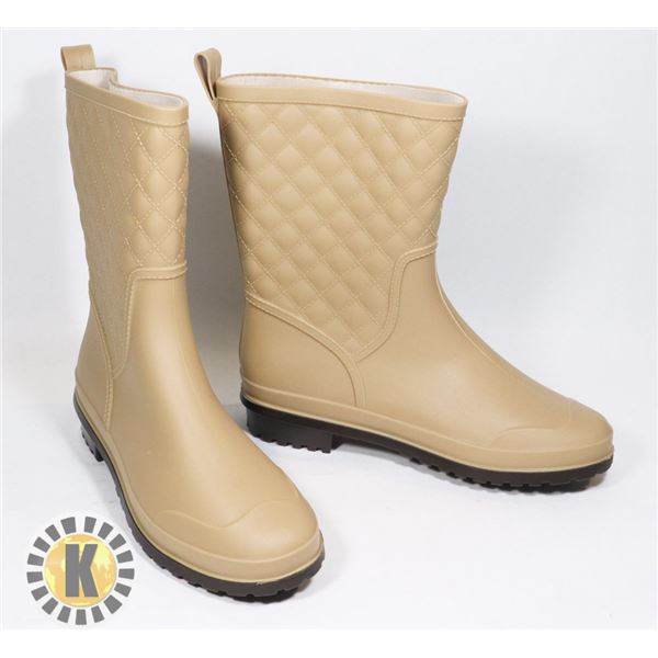 WOMENS TAN RUBBER BOOTS SIZE 36 US 6/ SMALL