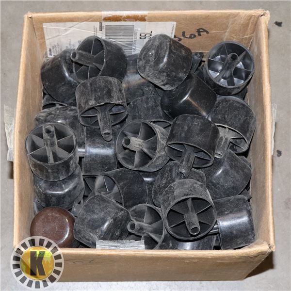 BOX OF PLASTIC FURNITURE LEGS