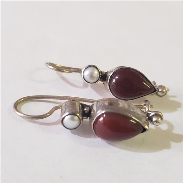 SILVER GARNET PEARL EARRINGS(~WEIGHT 6.85G)