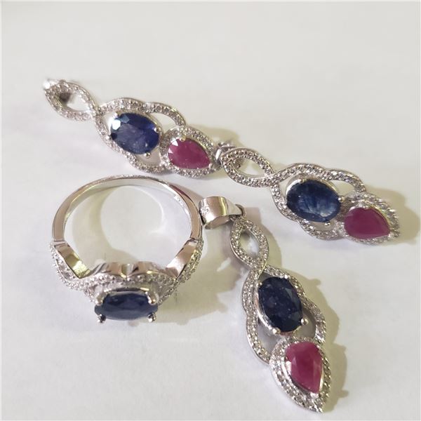 SILVER RHODIUM PLATED SAPPHIRE RUBY(6CT)