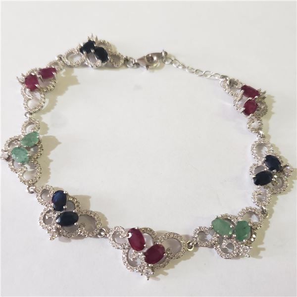 SILVER SAPPHIRE EMERALD RUBY BRACELET