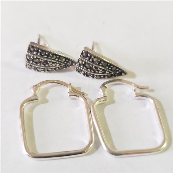 SILVER LOT OF 2 MARCASITE EARRINGS(~WEIGHT 5.13G)