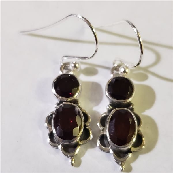 SILVER GARNET EARRINGS (~WEIGHT 3.42G)