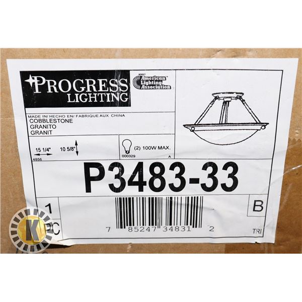 ECLIPSE 2 LIGHT 15 INCH COBBLESTONE SEMI-FLUSH MOUNT CEILING LIGHT MODEL: P3483-33***ITEM(S) LOCATED IN LETHBRIDGE ALBERTA