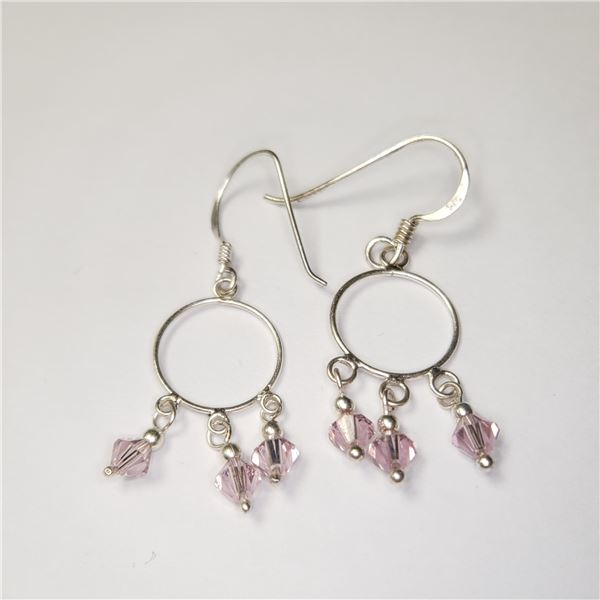 SILVER GARNET 19" EARRINGS, MADE IN CANADA