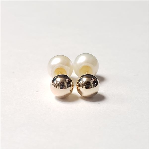 10K YELLOW GOLD FRESH WATER PEARL 2IN1 REVERSIBLE