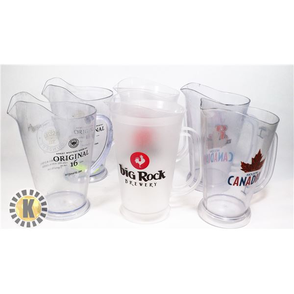 LOT OF 6 BRANDED BEER JUG - NEW & USED
