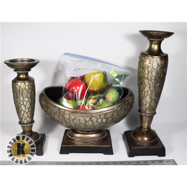 CENTERPIECE BOWL WITH MATCHING CANDLE HOLDERS