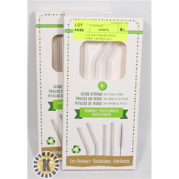 NEW GLASS STRAWS WITH CLEANER. 2 BOXES OF 4
