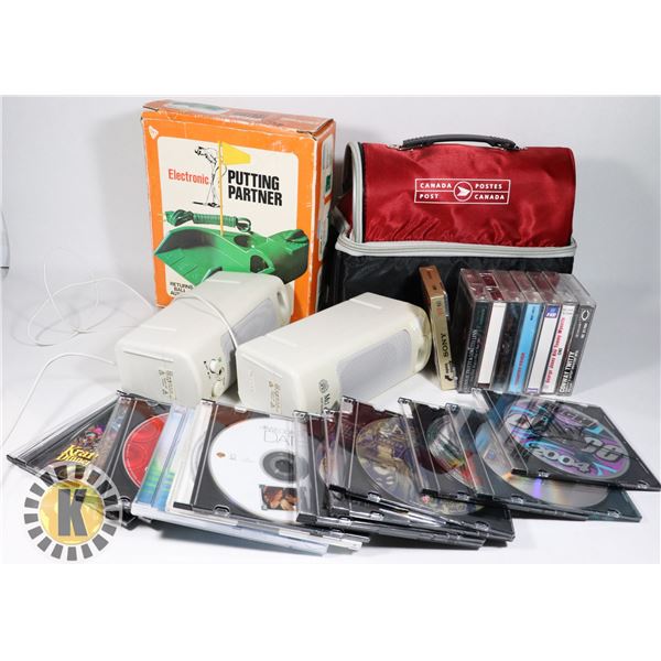CANADA POST LUNCH BAG, CASSETTE TAPES, COMPUTER SPEAKERS, AND CD'S***ITEM(S) LOCATED IN LETHBRIDGE ALBERTA