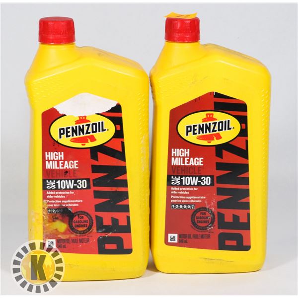 TWO 946ML PENNZOIL HIGH MILEAGE 10W-30 MOTOR OIL