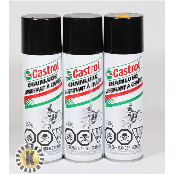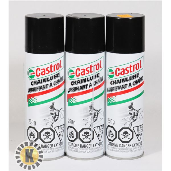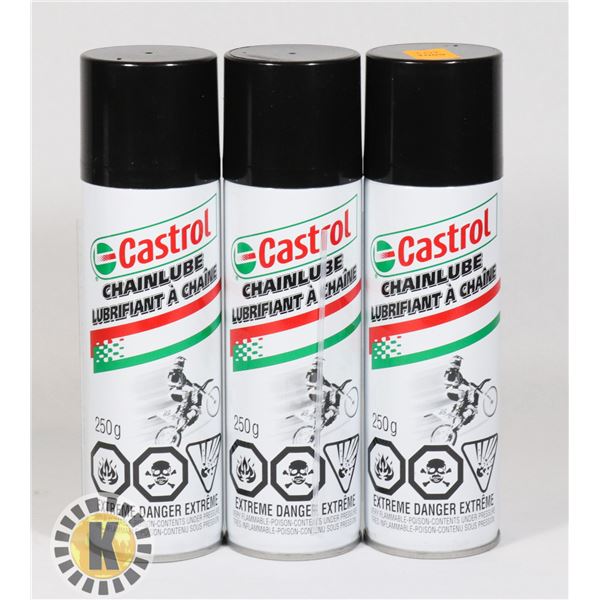 THREE 250G CASTROL CHAINLUBE SPRAY CANS