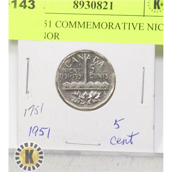 1751-1951 COMMEMORATIVE NICKEL TO HONOR1265 - 1751-1951 COMMEMORATIVE NICKEL TO HONOR