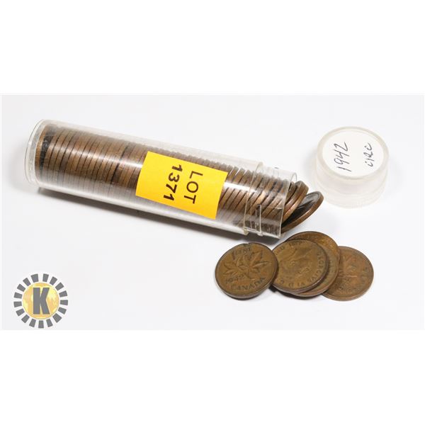 TUBE OF 1942 CIRC CANADIAN PENNIES1266 - TUBE OF 1942 CIRC CANADIAN PENNIES