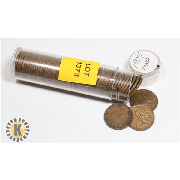 TUBE OF CIRC 1944 CANADIAN PENNIES1268 - TUBE OF CIRC 1944 CANADIAN PENNIES