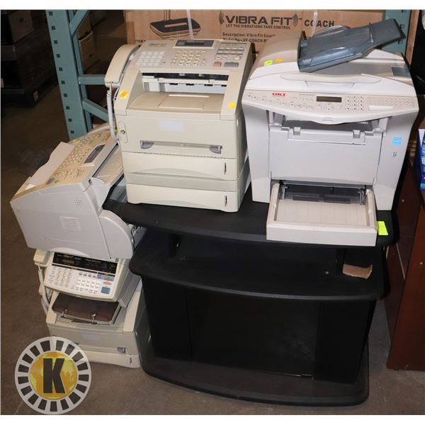 INCLUDES 5 PRINTERS (SOME WITH FAX/ SCAN/ COPY) AND TV STAND***ITEM(S) LOCATED IN LETHBRIDGE ALBERTA, TRANSPORT TO EDMONTON AVAILABLE FOR SMALL ITEMS