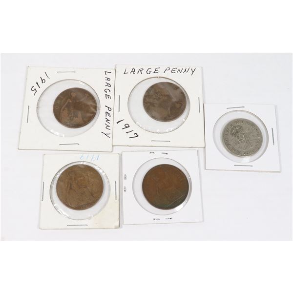 3 WORLD WAR II 1945-58 CANADIAN 5 CENTS 1896 BRITSH 1 PENNY COIN 1942 WORLD WAR II 1942 NEWZEALAND ONE CENT***ITEM(S) LOCATED IN LETHBRIDGE ALBERTA,