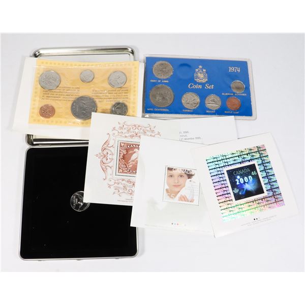 SET OF $1 UNCIRCULATED COINS 1985 1974 CANTENNIAL SET OF COINS 2000 MILLENNIUM DOVE QUARTER***ITEM(S) LOCATED IN LETHBRIDGE ALBERTA, FREE TRANSPORT