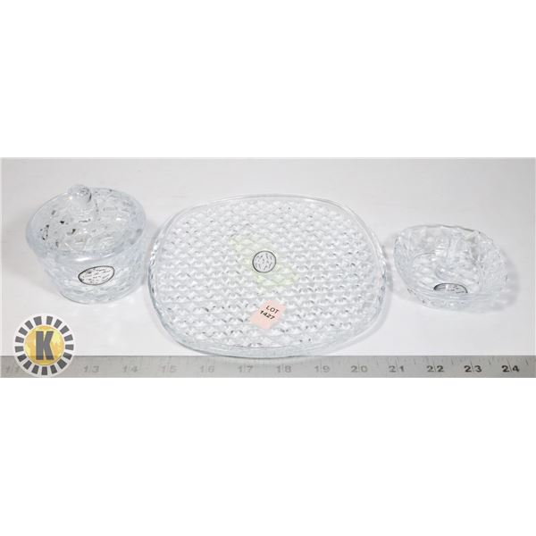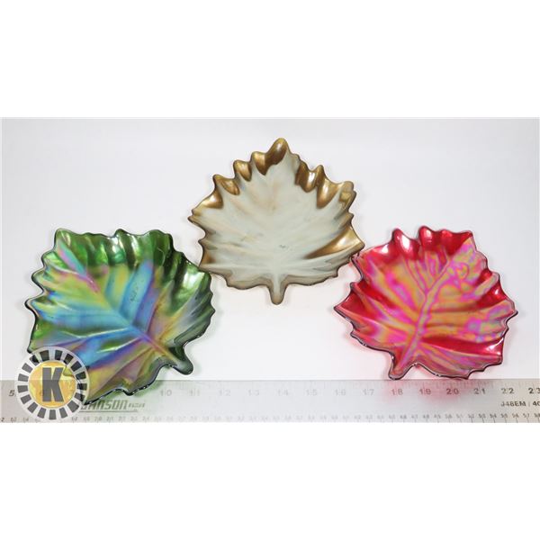 1413 - LOT OF 3 GLASS LEAF PLATESKastner Auctions