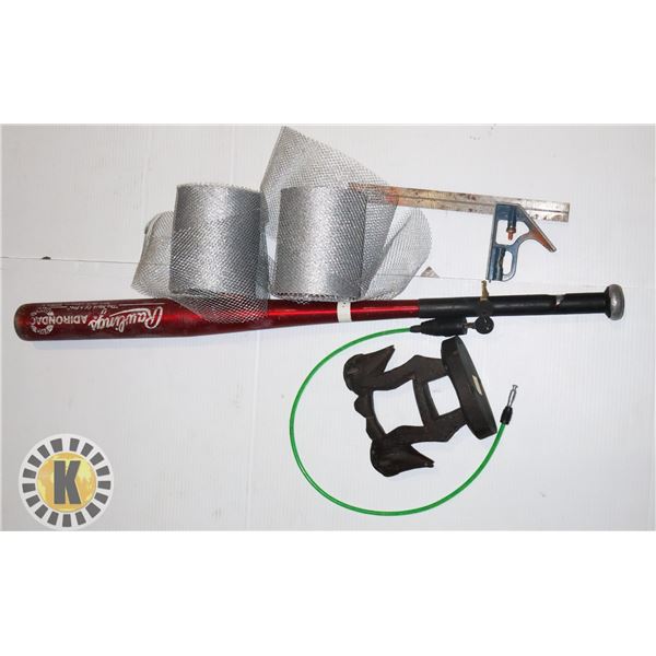 BIKE LOCK 90 DEGREE ANGLE SCALE ANTIQUE HORSE HEADS STATUE ALUMINUM BASEBALL BAT***ITEM(S) LOCATED IN LETHBRIDGE ALBERTA. SMALL ITEMS ONLY ARE AVAILAB