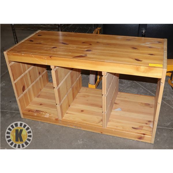 APPROX. 52" X 19.5" X 15" TALL. SOME NOTICEABLE SCUFFS/ SCRATCHES***ITEM(S) LOCATED IN LETHBRIDGE ALBERTA. SMALL ITEMS ONLY ARE AVAI...