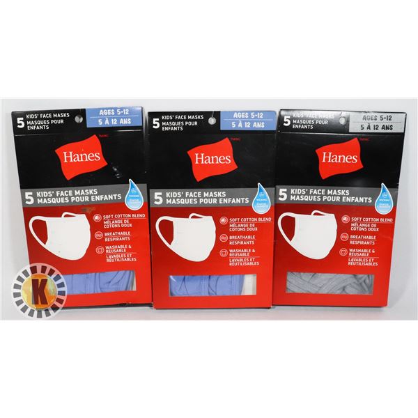 LOT OF 3 PACKAGES OF HANES KIDS FACE MASKS 5-121277 - LOT OF 3 PACKAGES OF HANES KIDS FACE MASKS 5-12