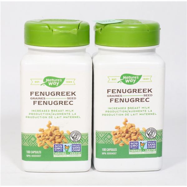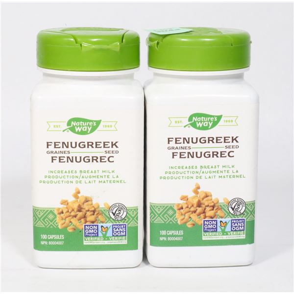 LOT OF 2  NATURES WAY FENUGREEK 100 CAPSULES3044 - LOT OF 2 NATURES WAY FENUGREEK 100 CAPSULES