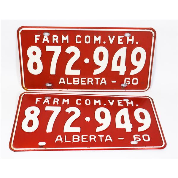 ALBERTA 1962 COM. FARM. LICENSE PLATE SET