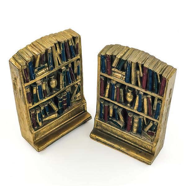 VINTAGE SPELTER BOOKCASE BOOKENDS ART SCULPTURES9006 - VINTAGE SPELTER BOOKCASE BOOKENDS ART SCULPTURES