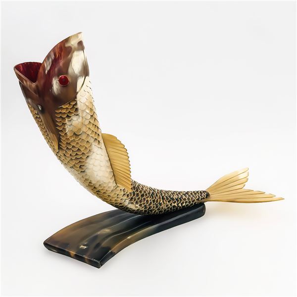 VINTAGE HAND CARVED HORN FISH SCULPTURE FOLK ART9008 - VINTAGE HAND CARVED HORN FISH SCULPTURE FOLK ART