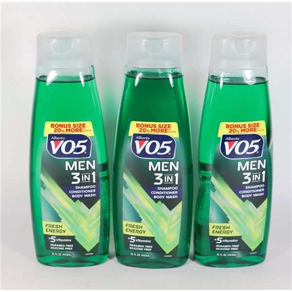LOT OF X3 V05 MEN 3IN1 SHAMPOO, CONDITIONER &BODY1551 - LOT OF X3 V05 MEN 3IN1 SHAMPOO, CONDITIONER &BODY