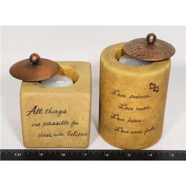 SET OF 2 CANDLE HOLDERS HAVE LOVE AND FAITH1570 - SET OF 2 CANDLE HOLDERS HAVE LOVE AND FAITH