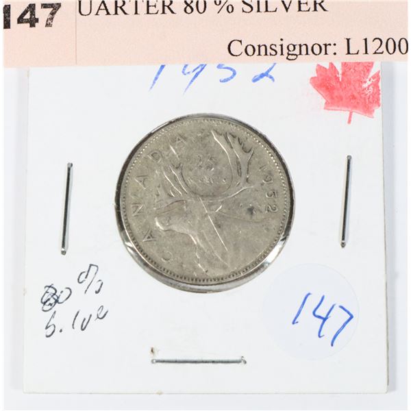 147 - 1952 QUARTER 80 % SILVERKastner Auctions