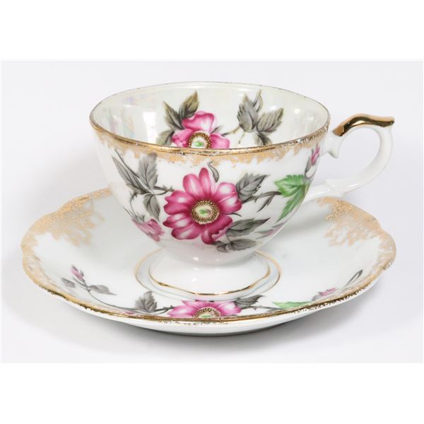 IRIDESCENT FLOWER DESIGN TEA CUP AND SAUCER1502 - IRIDESCENT FLOWER DESIGN TEA CUP AND SAUCER