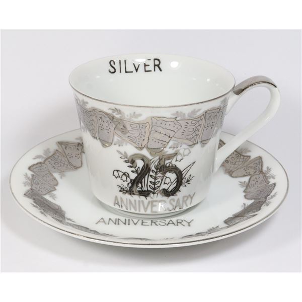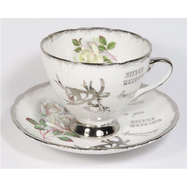 25TH SILVER ANNIVERSARY TEA CUP AND SAUCER1513 - 25TH SILVER ANNIVERSARY TEA CUP AND SAUCER