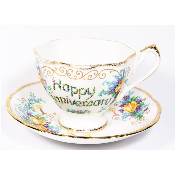 QUEEN ANNE "HAPPY ANNIVERSARY" TEACUP AND SAUCER1511 - QUEEN ANNE "HAPPY ANNIVERSARY" TEACUP AND SAUCER
