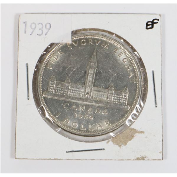 1939 CANADIAN SILVER DOLLAR (EF) **ITEM(S) LOCATED IN LETHBRIDGE ALBERTA. ALL ITEMS IN THIS AUCTION ARE ELIGIBLE FOR FREE TRANSPORT TO EDMONTON. EXPE