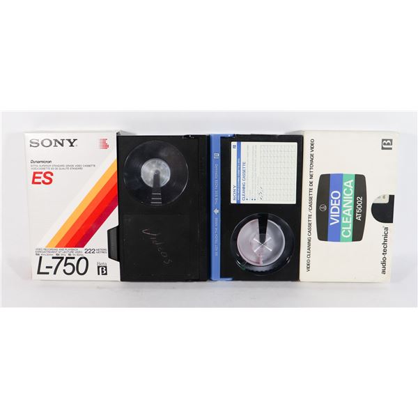 2 SONY DYNAMICRON ES L-750 VIDEO RECORDING VHS AND FUJI VIDEO HEAD CLEANING CASSETTE.