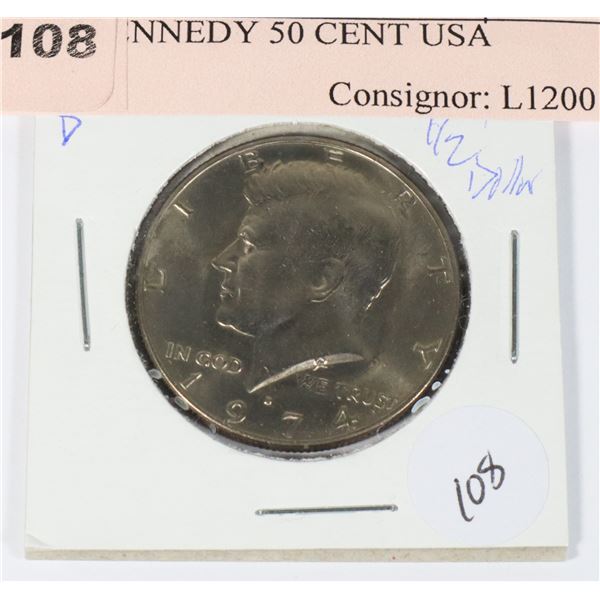 LOOK CLOSELY AT DETAILS IN THE COIN & DATE. 1974 D Kennedy 1/2 Dollar popular 1/2 Dollar of collectors and Historians