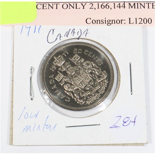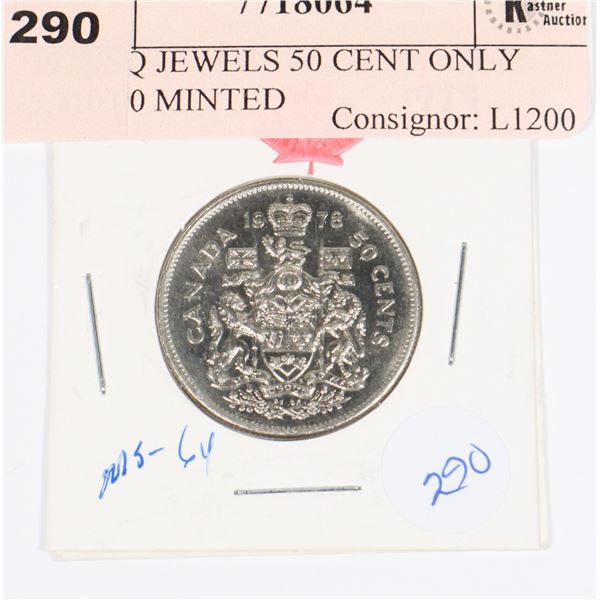 PART OF GOV'T RECALL 2020 NO LONGER CIRCULATING COINAGE. 1978 50 cent piece only 3,341,892 Minted many now turned into Gov't of Canada f...